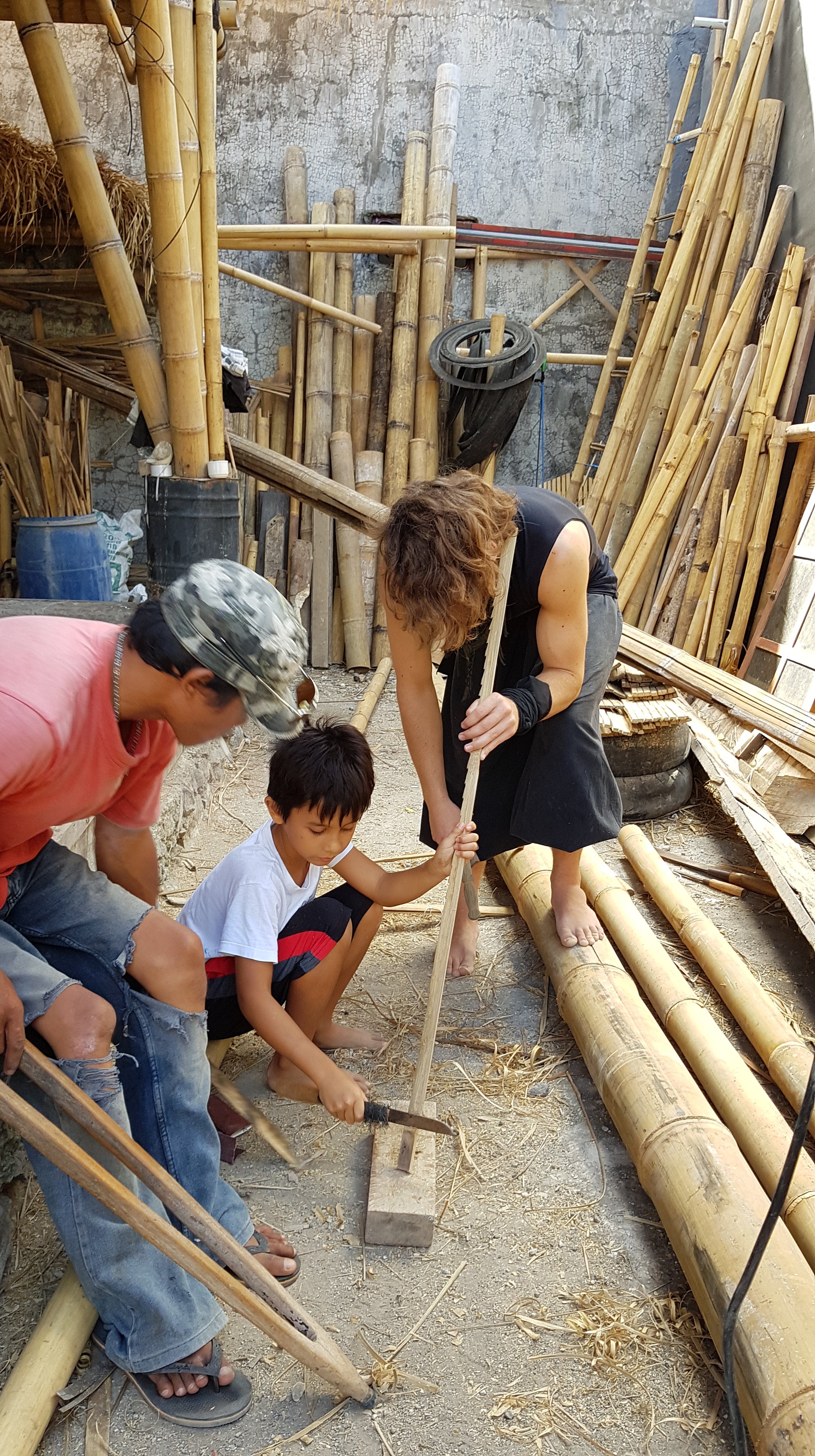 Other kids joined us for the workshops and our helpers learned also for crafting bamboo… We accept payment in ecobricks – the price for one workshop being 3 well-packed bricks.