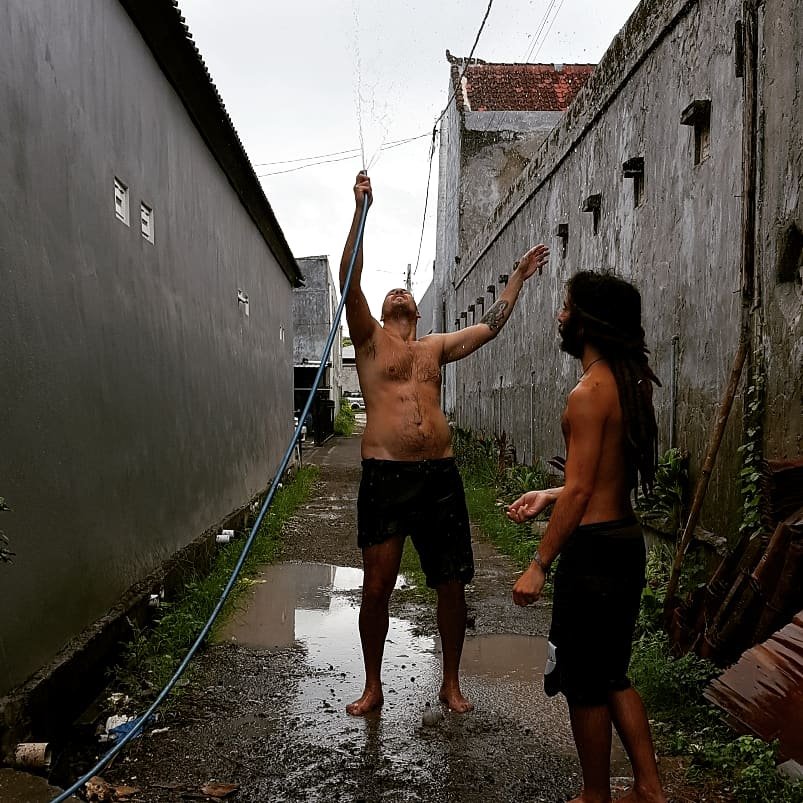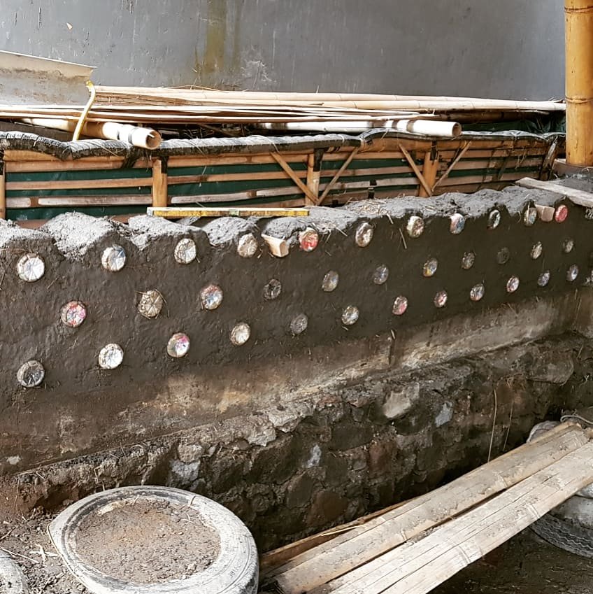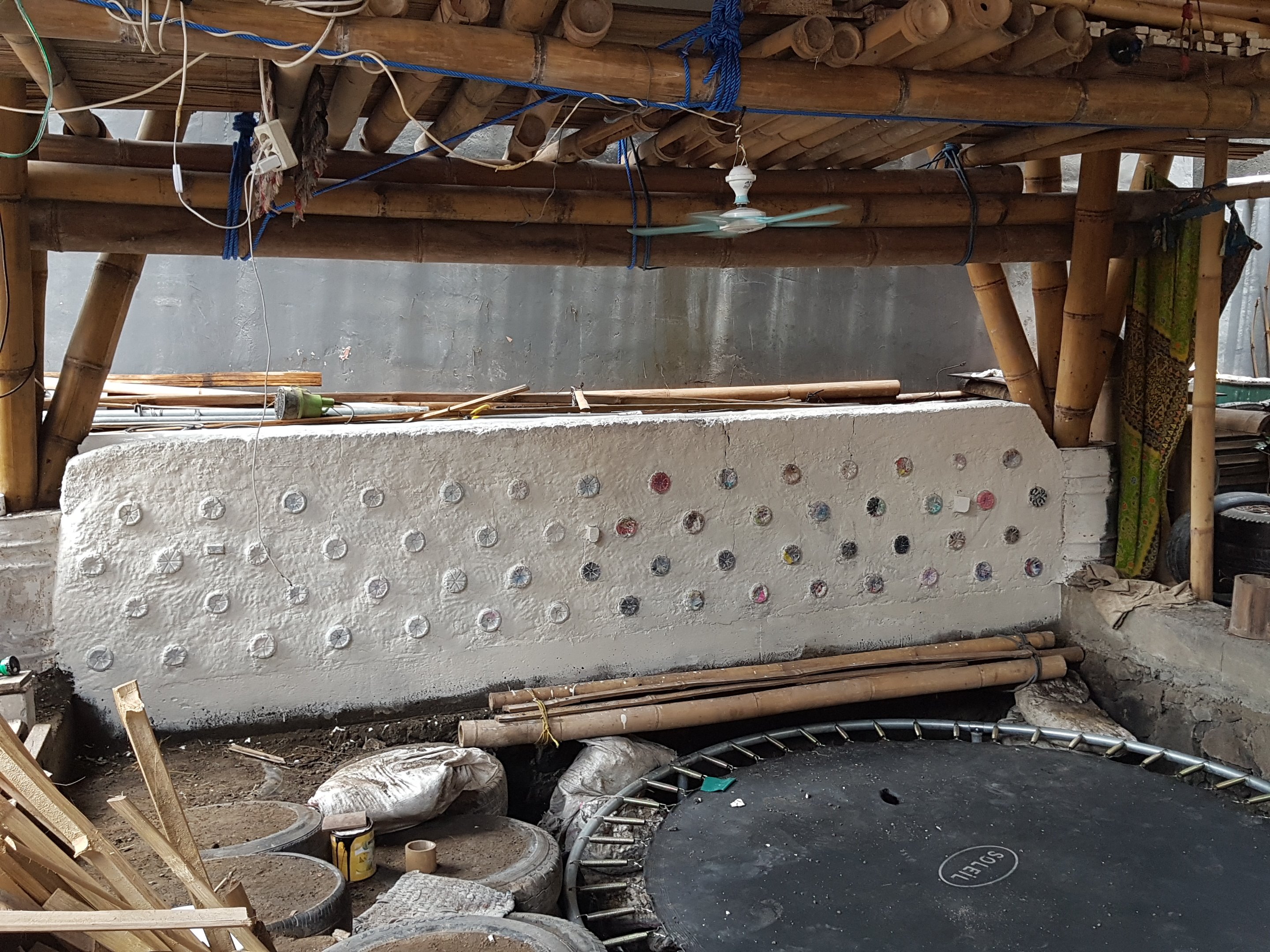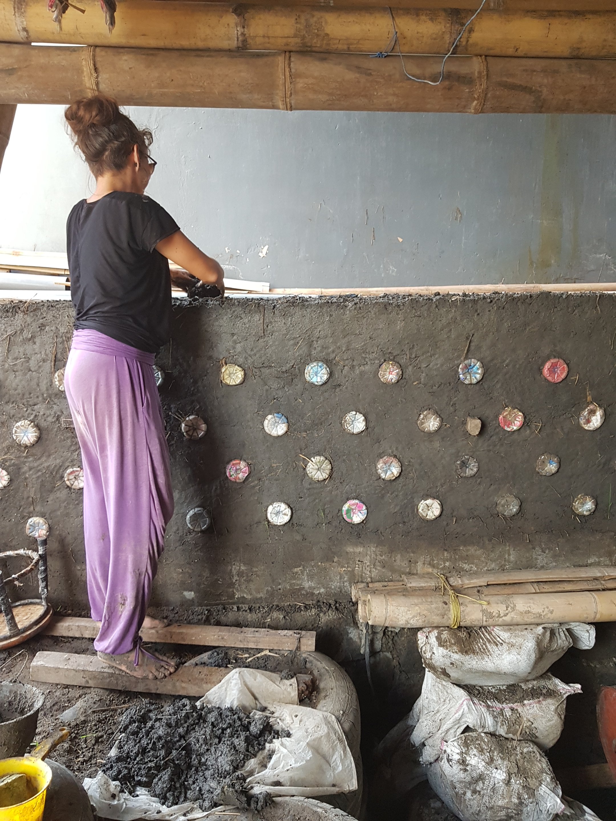 Here is a short video about the process of Cob-making used to build walls onto our building’s structural foundation in the ground level of Freyr’s Bamboo Home/Sky-Kubu in Denpasar, Bali… Xavier Allard from Koluba – a European Natural Building company joined us in January 2018 for a few weeks on his way home from Malaysia to give us some handy instruction for making cob and ecobrick from a straw bale and earth builder’s perspective. We learned the basics of spacing for structural and non-structural walls (also using glass bottles), the basics of lime/calcium plasters and timber/bamboo reinforcement in cob structures.