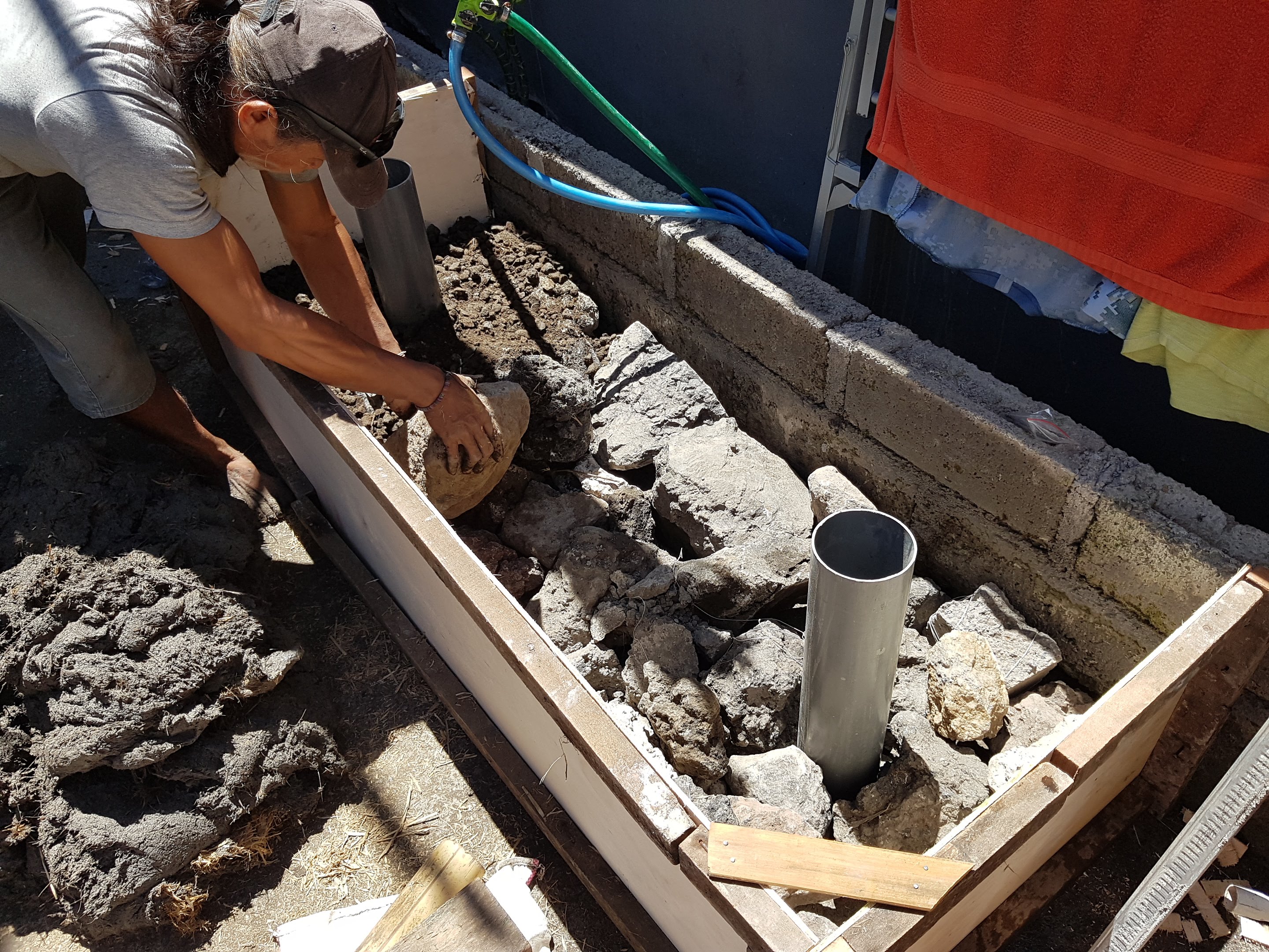 Ecobricks can be used to “sequester” plastic and create a visually appealing aspect to a cob structure, as can glass bottles. We have been playing with Cob here for a while and are developing a small project program we can take to schools and remote communities to encourage the practice/habit of putting used plastic into an ecobrick instead of the all-to-familiar out-the-window/away habit humans have developed since plastic’s invention. We are seeking support to be able to develop and include Outreach Program participants and local volunteers in taking our training program to schools and villages – as a reward for their collection of plastic throw-away into Ecobricks (and until a better method of plastic disposal becomes available at a broad scale) to make a bench seat/bus shelter with a solar panel on the roof connected to a charging station for mobile phones/devices/torches. We figure that will provide “motivation” to collect plastic and sequester it and keep it out of our rivers/oceans. Read more about ECOBRICKING & ZERO WASTE.