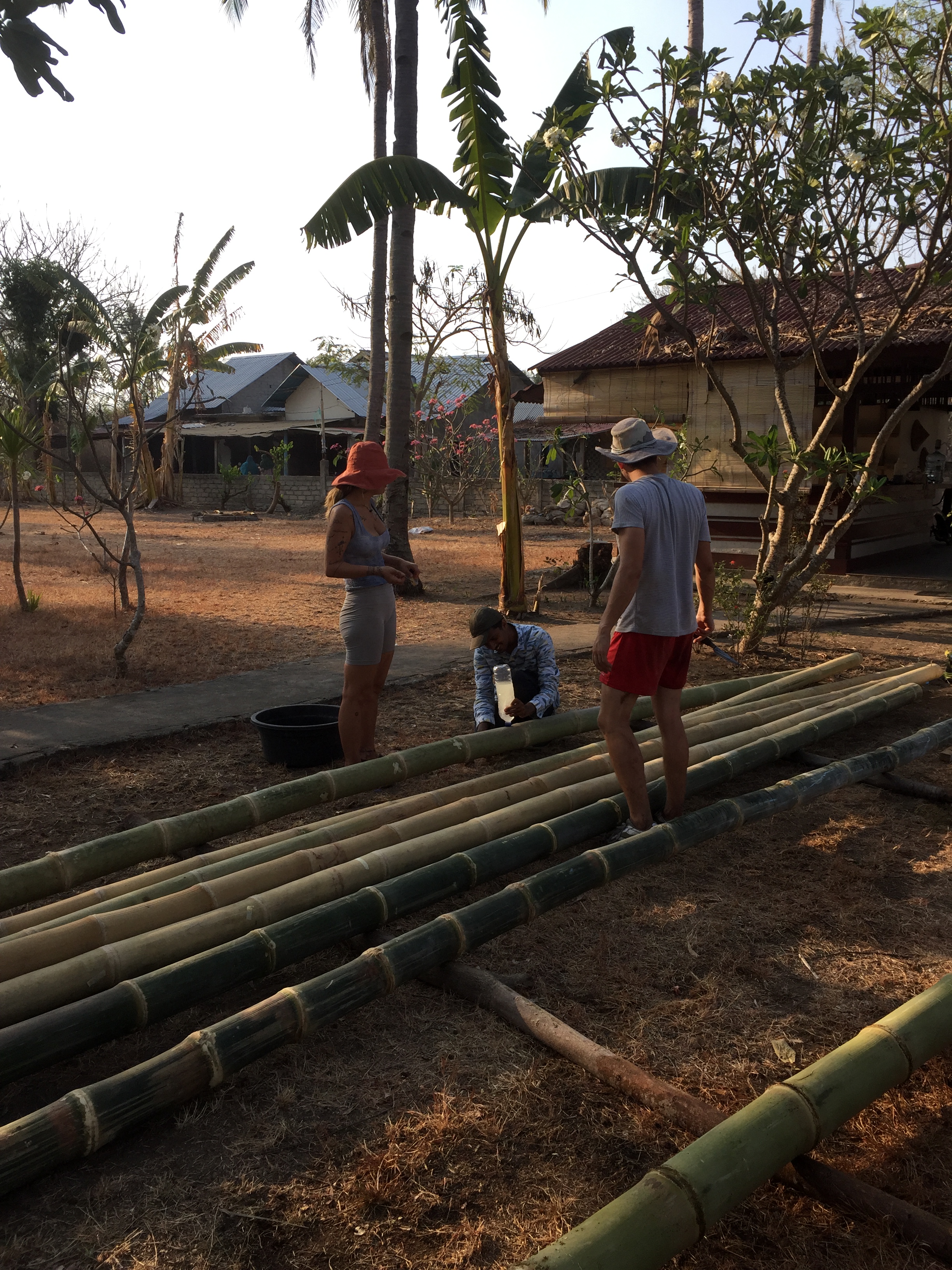 We are in our first week of our bamboo builders program making furniture-scale carpentarianism to prep ourselves for next week when we will build the pavilion and it’s still possible to join us for the 2 week build…