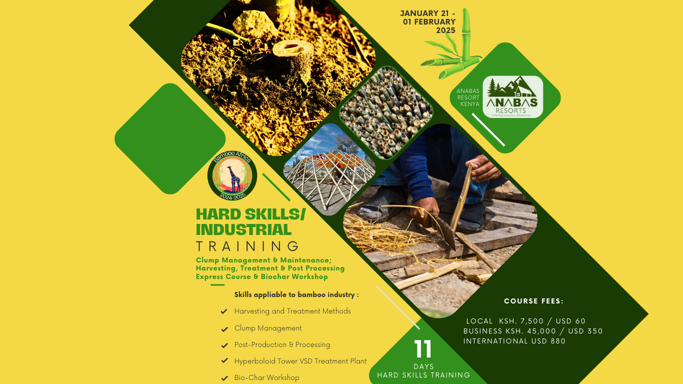 The Bamboo4Africa Training (https://Bamboo4Africa.org) is about skill-building resilience and economic futures for communities through utilisation of the Bamboo resources that exist (mostly planted 8-10 years ago through Kenyan government initiatives).