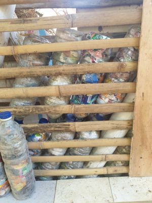 Give me plastic! I’ve discovered a way to build out bamboo structure walls using Ecobricks—plastic bottles packed tightly with soft plastic waste to create solid building materials. Last year, we constructed a bamboo-framed wall section featuring clay-straw infill reinforced with these Ecobricks.