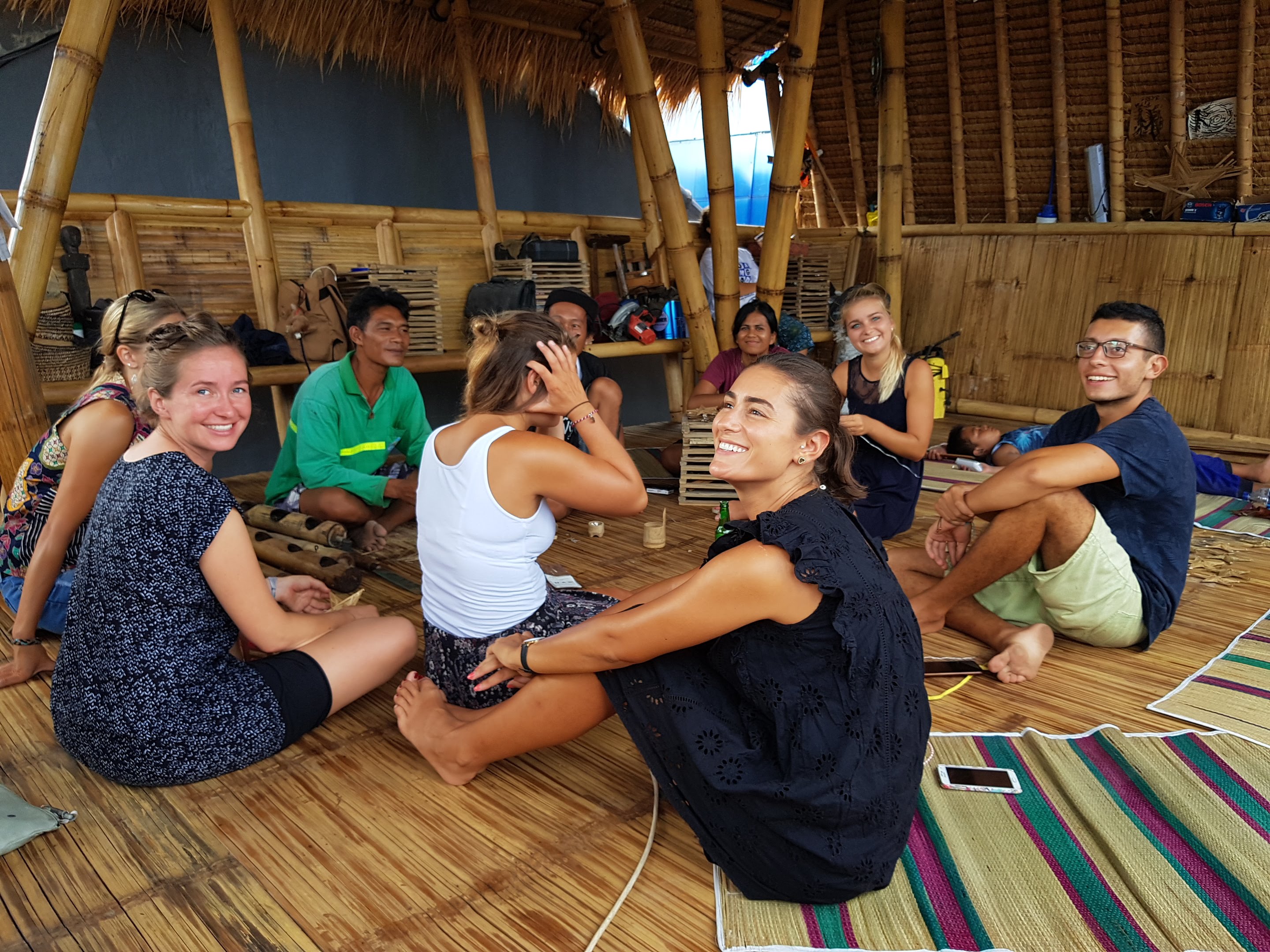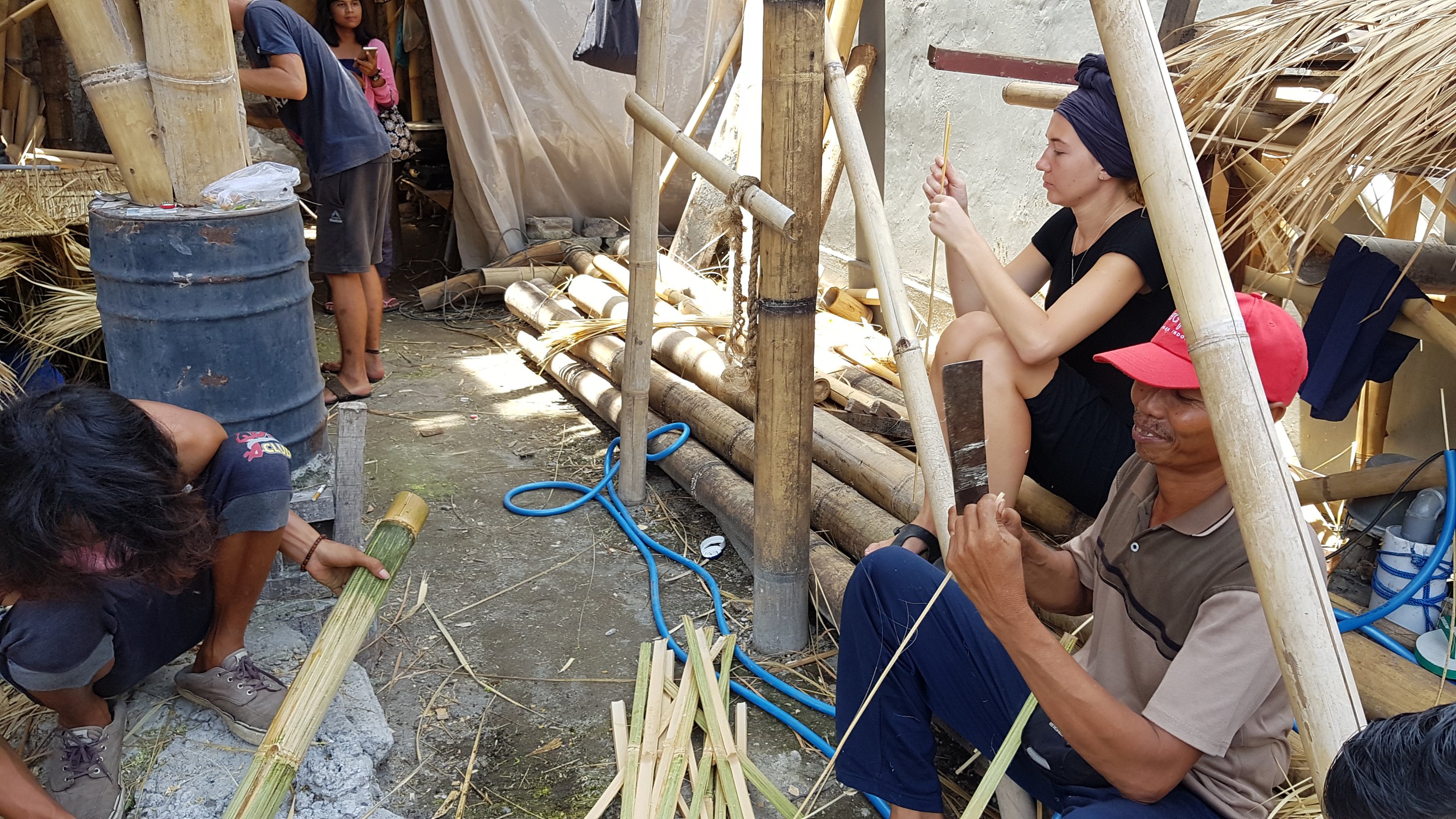 I came to Bali initially to learn about bamboo preservation after finding that, when helping one family to build a small homestay house in Palawan (Salacot area), termites were a huge issue and wreakers of mass destruction without heavy chemical treatment, turned to dust pretty darn quick. Also bringing water to homes from nearby water sources to save time and energy manually carrying water was an issue (no electricity in this area). I met Djuka Montenero (Farmers Yard Hostel founder) through HelpX and became fascinated with Indoneisan bamboo building techniques. I realised that Bali was the place to learn about bamboo and helped Djuka build a Lumbung (traditional rice barn) from bamboo which became the basis for my sky-kubu design. I started this bamboo project with local craftsmen and volunteers and have learned everything hands-on… through local knowledge…