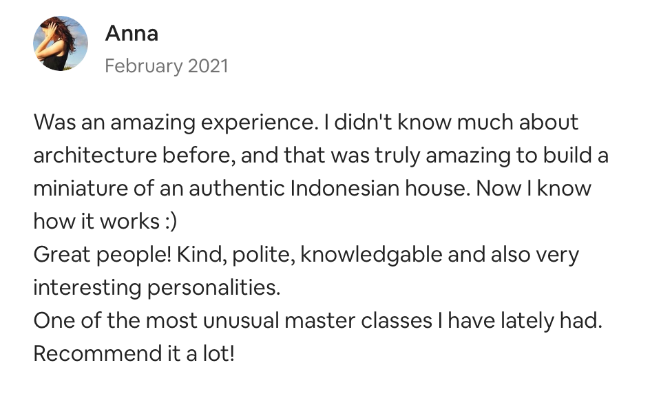 While living here in Bali, I have expanded my own skills and knowledge and have been able to create a livelihood for myself from the learning I’ve had living here in Indonesia. And, I look forward to developing my Vision further – in my own “work” role/s in facilitating workshops in bamboo and natural /upcycled building techniques, and in having effective contribution towards enabling people (in general) to lead more sustainable lives and to enable the development of what I believe will enable humanity to genuinely and heartully reconnect across cultures and continents – creating the transition stage of Regeneration towards a culture of equality and inclusivity, and preserving, maintaining and empowering social enterprise tied to tradtional skills and knowledge – and building thriving earth-friendly interconnected empowered village networks collaboratively.
