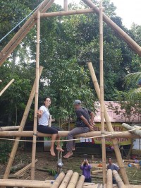 - WEEK 6 – Class Build Project: Making Stairs, Central Beam and scaffold, Roof Supports, Making Lidi, Roofing Usuk (Rafters) – Split/Whole Beam, Splitting Bamboo, Install Flooring Beams, Make Bamboo Flooring, Bending Bamboo.