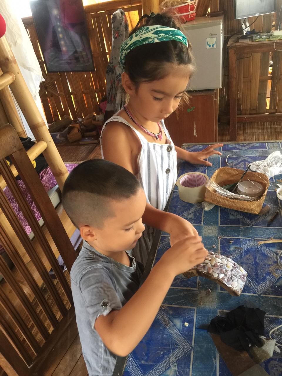 We have 2 daily sessions – the Morning session at starting at 9.30am until 12pm (2.5 hrs) aimed explores toy-making (dolls, cars, boats, animals and motoric). The Afternoon session 2pm to 4.30pm explores carpentry and building skills with topics from small model house projects, doll house and furniture, backpacks and jewelry and decorations. Weaving is sometimes incorporated in morning and/or afternoon sessions.