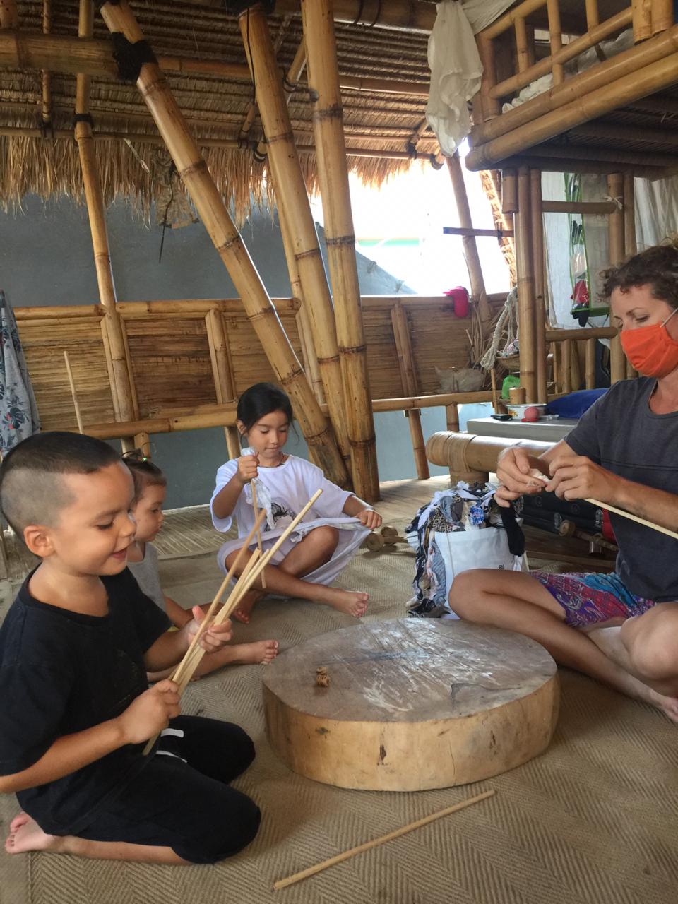 Friends of Freyr kids program is open to all abilities at Freyr’s Bamboo Home in Denpasar for day activities and overnight/camp programs. Making toys from bamboo swords, shields, bows and arrows, to dolls/puppets, stilts, model houses, boats as well as cob (earth and straw) building. We have assistant staff to assist special needs. We also offer Mobile Craft Sessions for Homeschooling Groups and Family Workshops. Our kids club activities encourage exploration, co-operation, imagination and development of manual building and problem-solving skills and aim to develop creativity and right-brain thinking. Open to all abilities, we offer day activities, camp programs and one-on-one special needs support with our special needs and family retreat program.