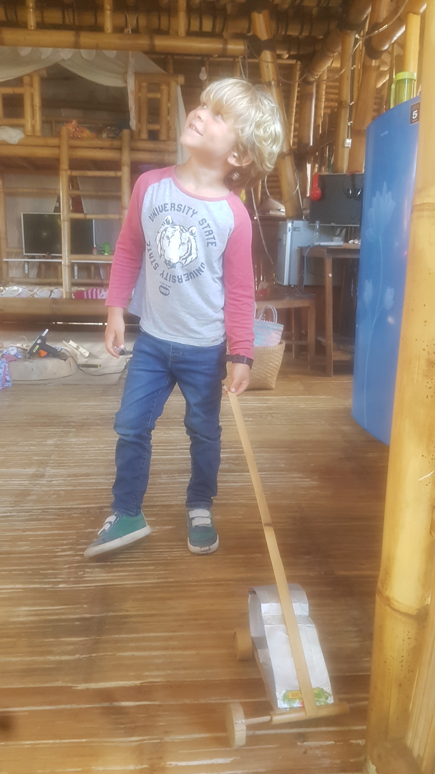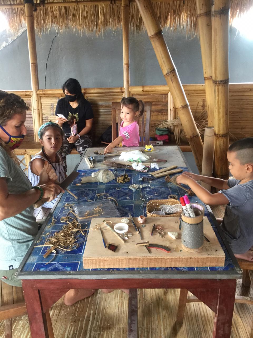Being able to make one’s own toys with ones own hands is a satisfaction kids can experience in our Bamboo Starz Kids Workshop Program at Freyr’s Bamboo Sky Kubu in Denpasar. Our Kids program aims to encourage and enable kids to develop dexterity through bamboo crafting skills and to enable them to design their own project pieces incorporating recycled and up-cycled items from the home/local environment with a focus on zero-waste innovation.