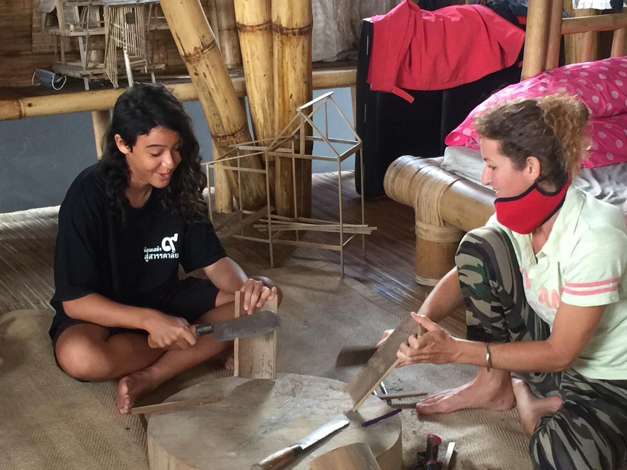 Materials used are bamboo and from other recycled materials. Tool use is limited to saws, carpentry knives, sandpaper and manual drill / mini drill – being used with supervision, and practice to learn traditional techniques with some ‘modern tool’ use (where appropriate); All sessions have a topic framework, on from which individual creativity encouraged. The main focus is on developing imaginative play in a natural learning environment.
